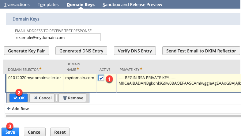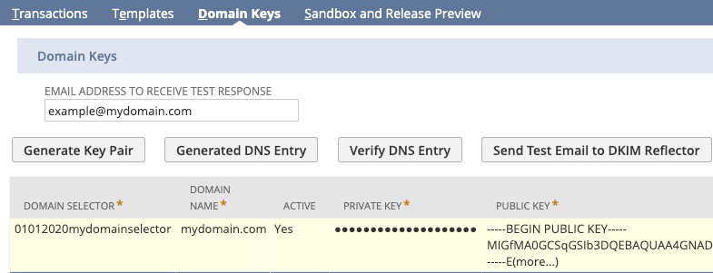 11. Once the DNS Entry is added in your domain provider, go back to your NetSuite and click Verify DNS Entry followed by Send Test Email to DKIM Reflector. You will receive different email notifications confirming your set up.