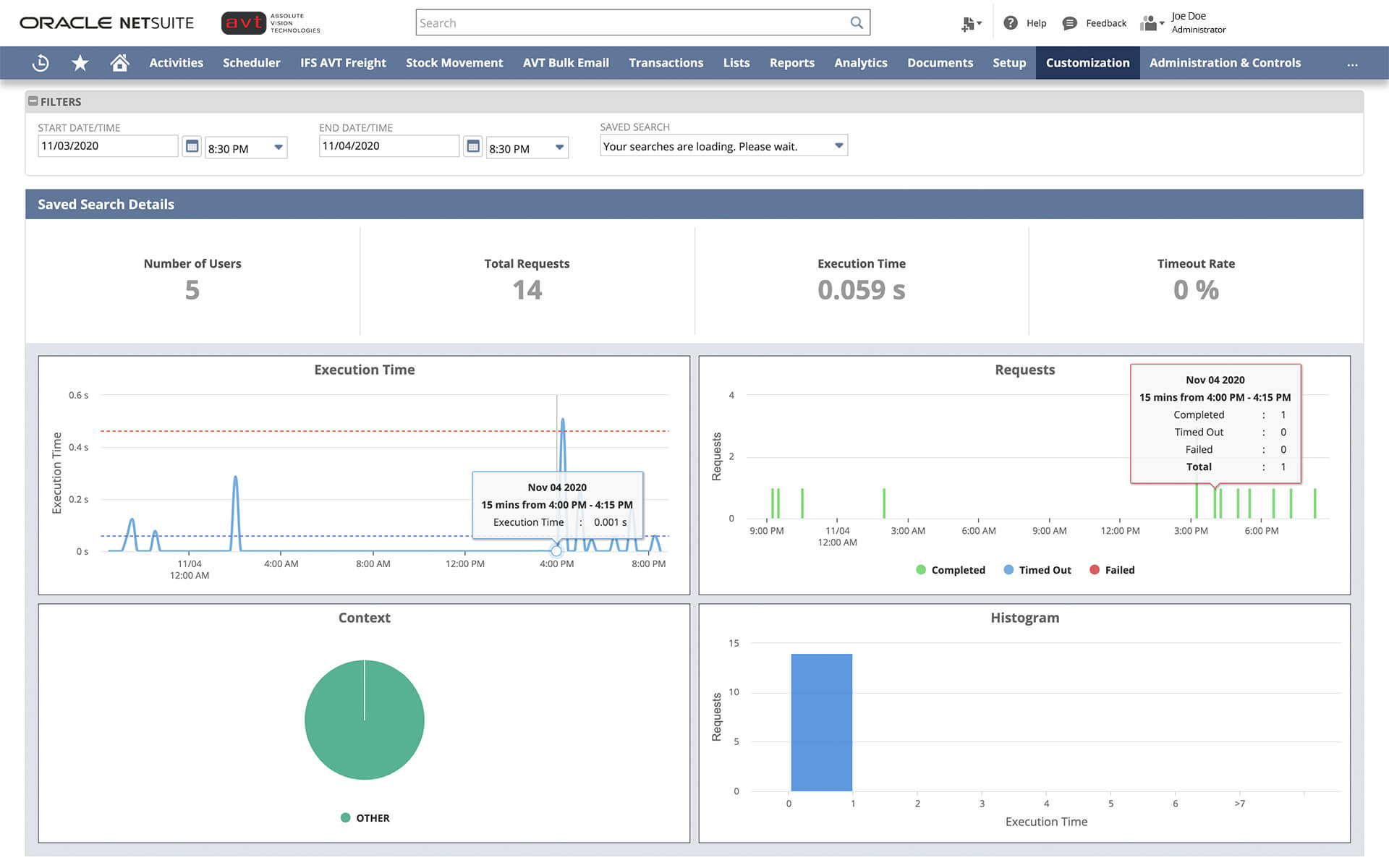 - Can determine which script or workflow is causing a high SuiteScript or workflow time.