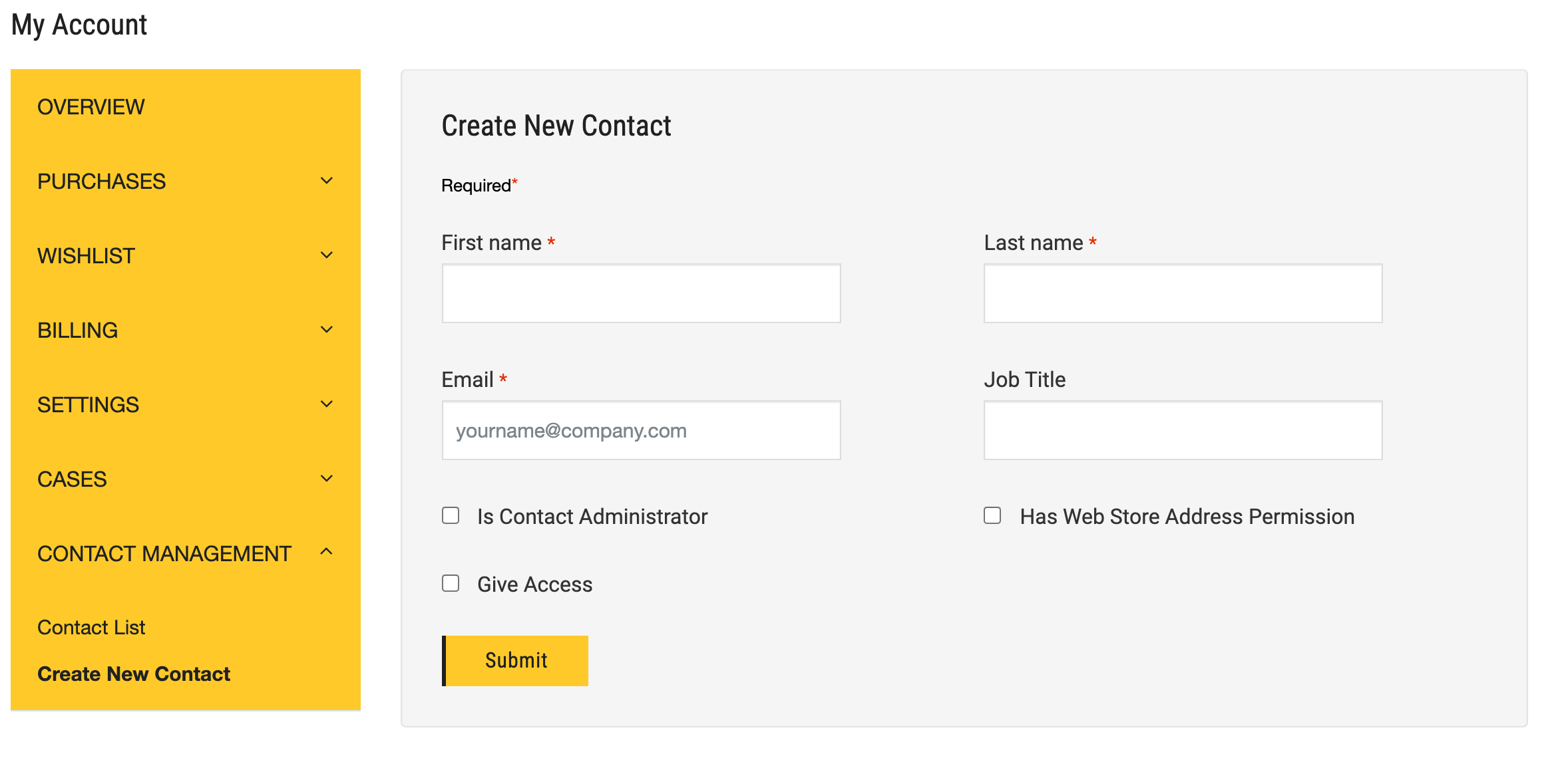 Contact Management B2B extension for SuiteCommerce Advanced developed by Absolute Vision Technologies allows authorised contacts to add new contacts under My Account. The extension is available for SCA 19.1 Site versions and above.