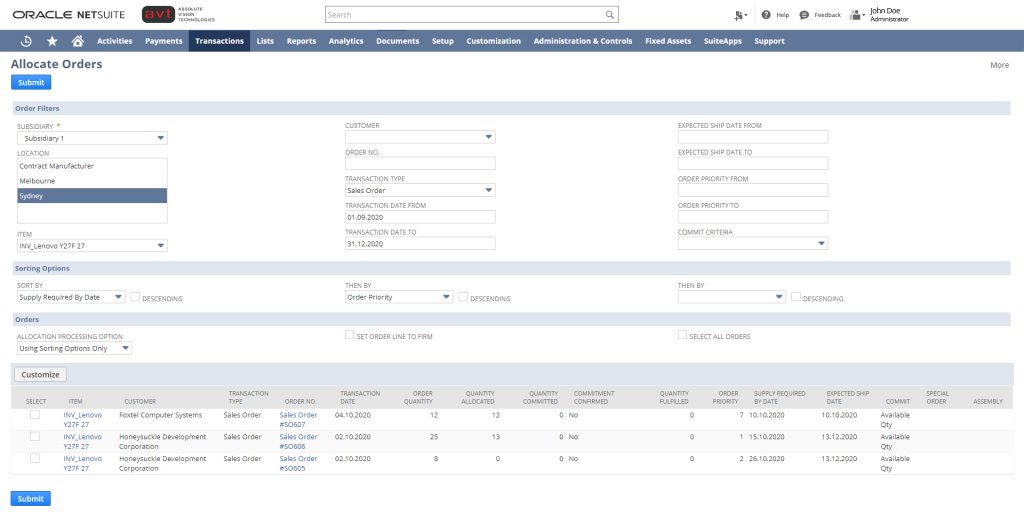 Supply Allocation in NetSuite – AVT Tips and Tricks